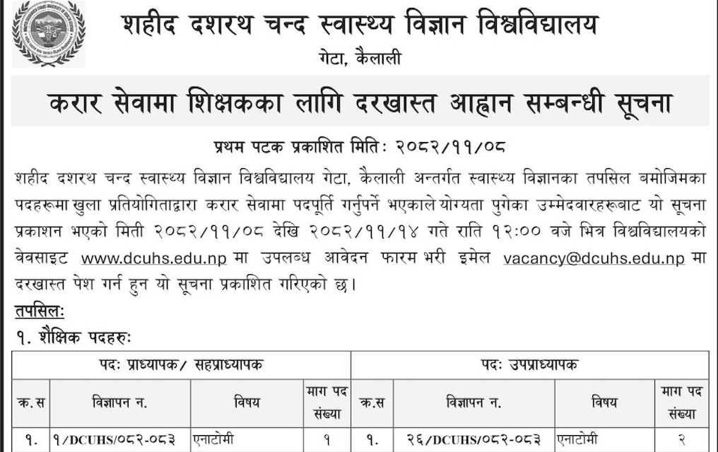 Martyr Dasharath Chand University of Health Science (MDCUHS) Geta, Kailali- Vacancies for Various Posts