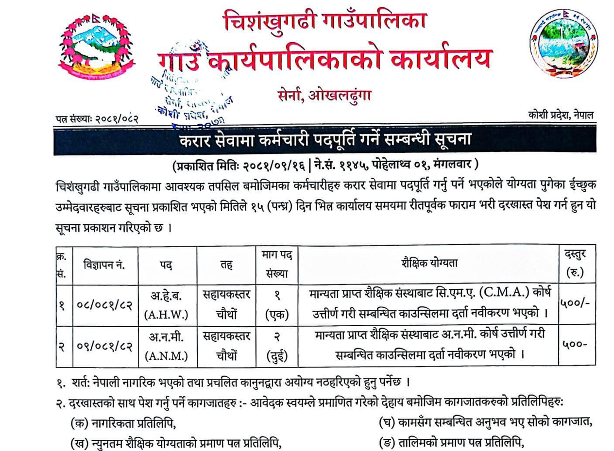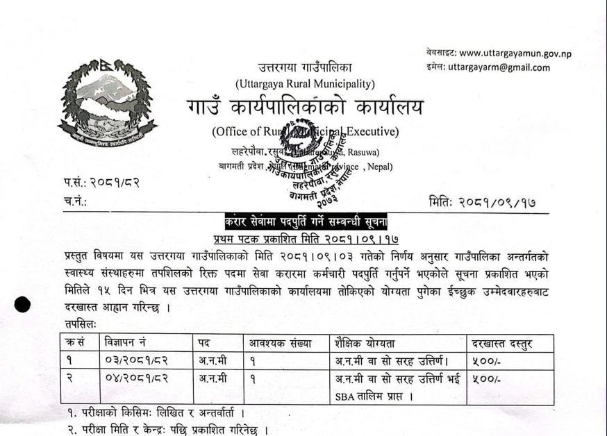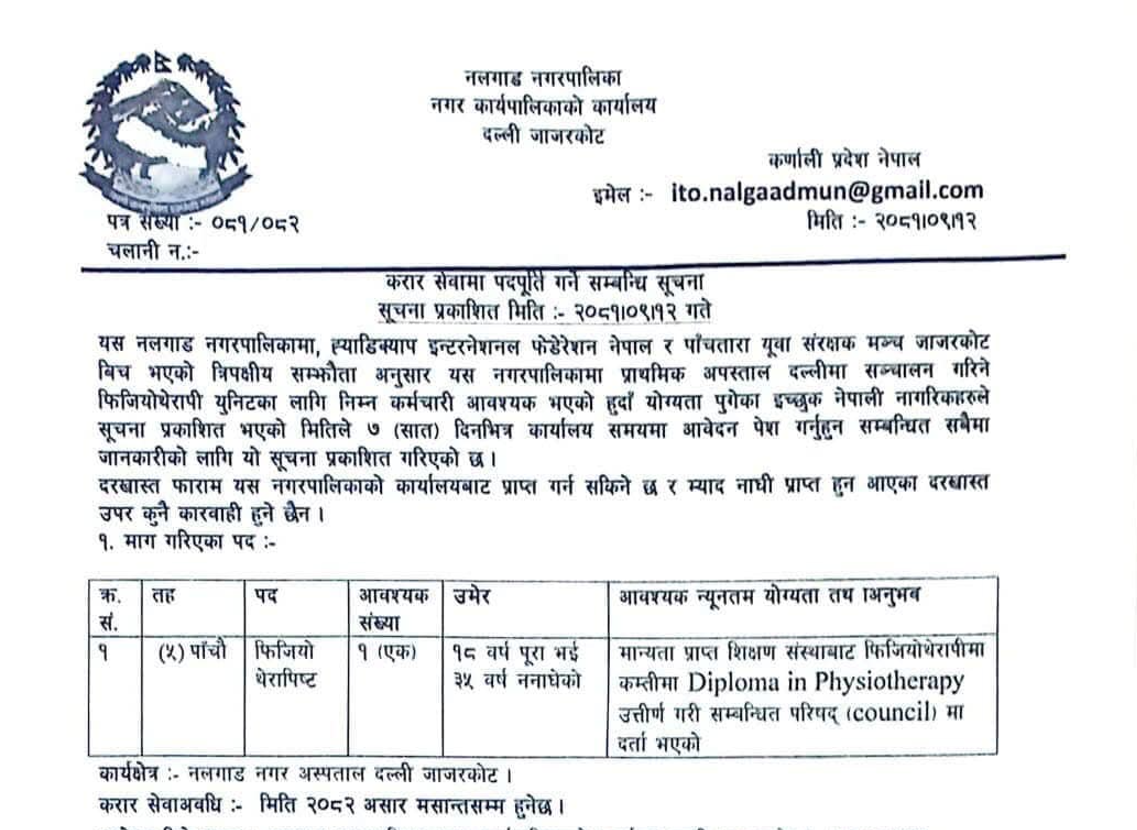 नलगाड नगरपालिकामा कर्मचारी आवश्यकता सम्बन्धी सूचना