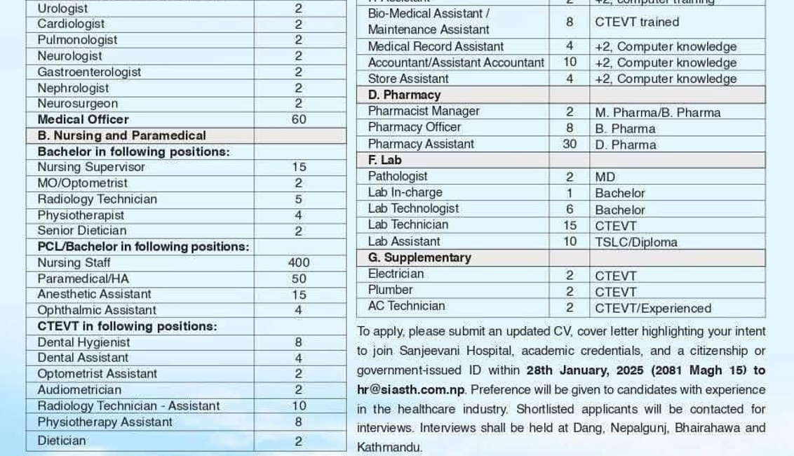 Vacancy Announcement at Sanjeevani Institute of Advanced Studies and Teaching Hospital Dang for Various Positions