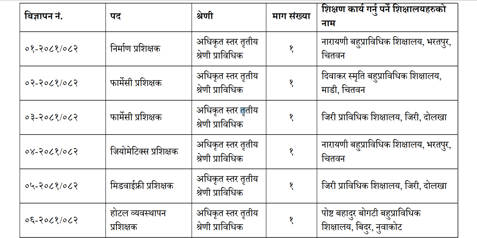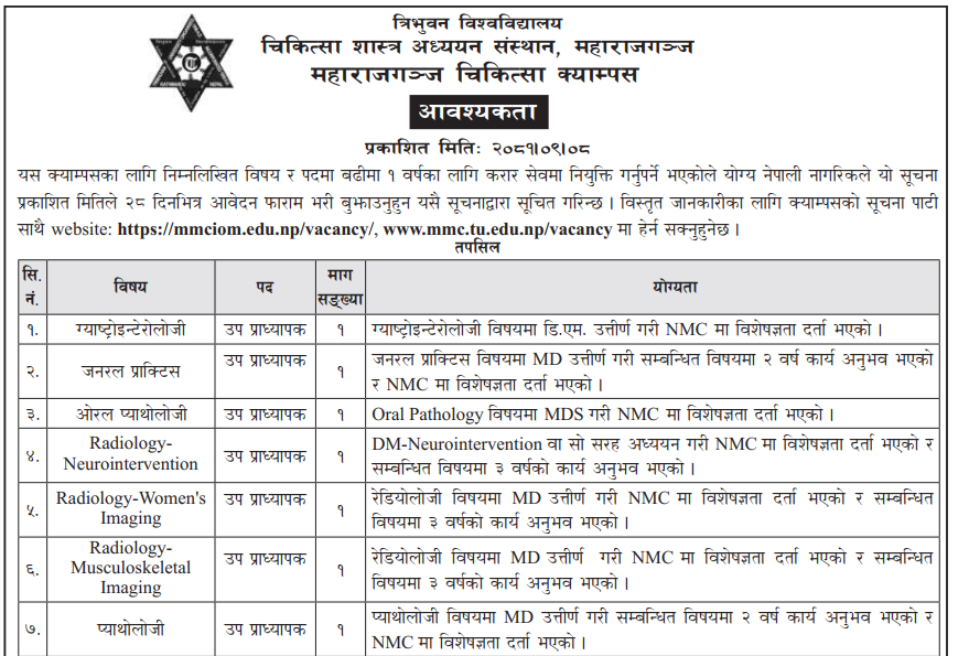 चिकित्सा शास्त्र अध्ययन संस्थान, महाराजगञ्ज चिकित्सा क्याम्पसमा कर्मचारी आवश्यकता सम्बन्धी सूचना