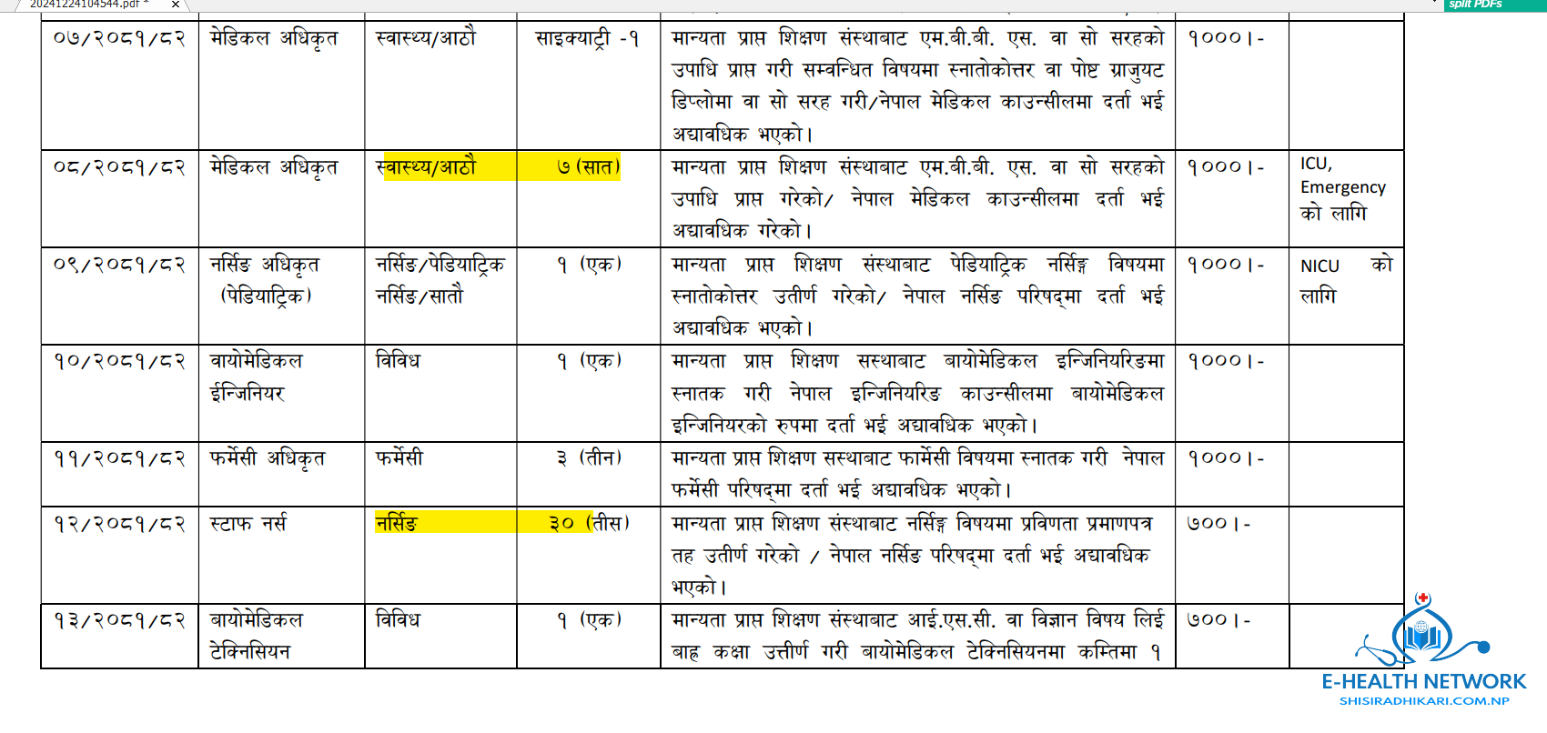 कोशी अस्पताल विराटनगरमा चिकित्सक, नर्स, परामेडिक्स, फार्मेसी लगायतका ५१ जना कर्मचारी आवश्यकता सम्बन्धी सूचना