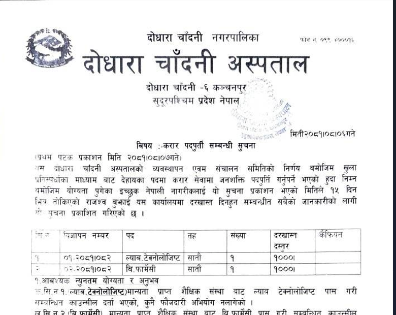 दोधारा चाँदनी अस्पतालमा कर्मचारी आवश्यकता सम्बन्धी सूचना