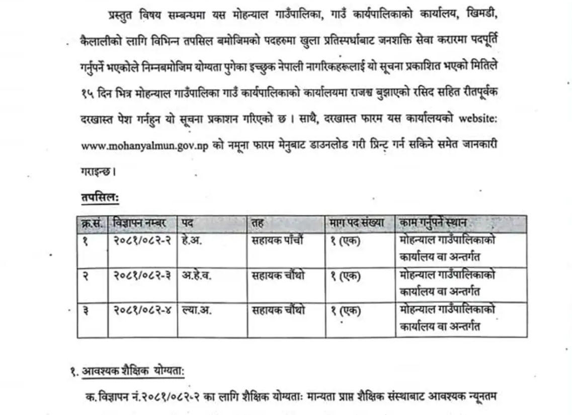 Vacancy For AHW/HA/LA At Mohanyal Rural Municipality