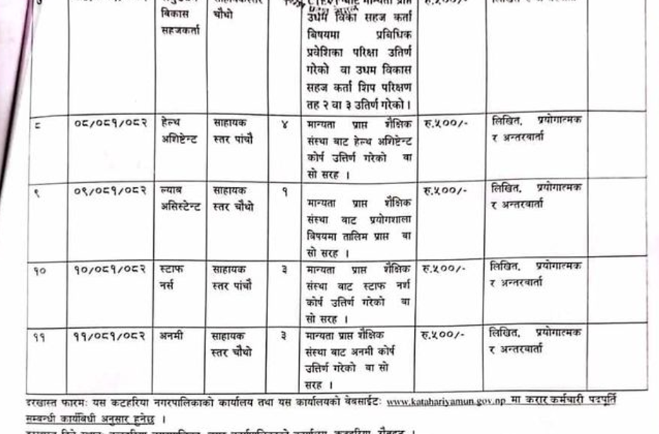 Vacancy Announcment At Katahariya Municipality, Rauthat