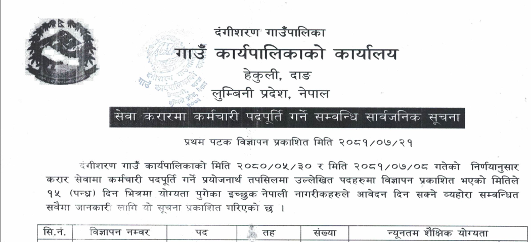दंगीशरण गाउँपालिकामा कर्मचारी आवश्यकता सम्बन्धी सूचना !