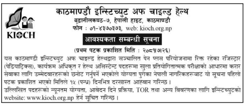 Vacancy For Registrar, Program Officer, And HA At KIOCH