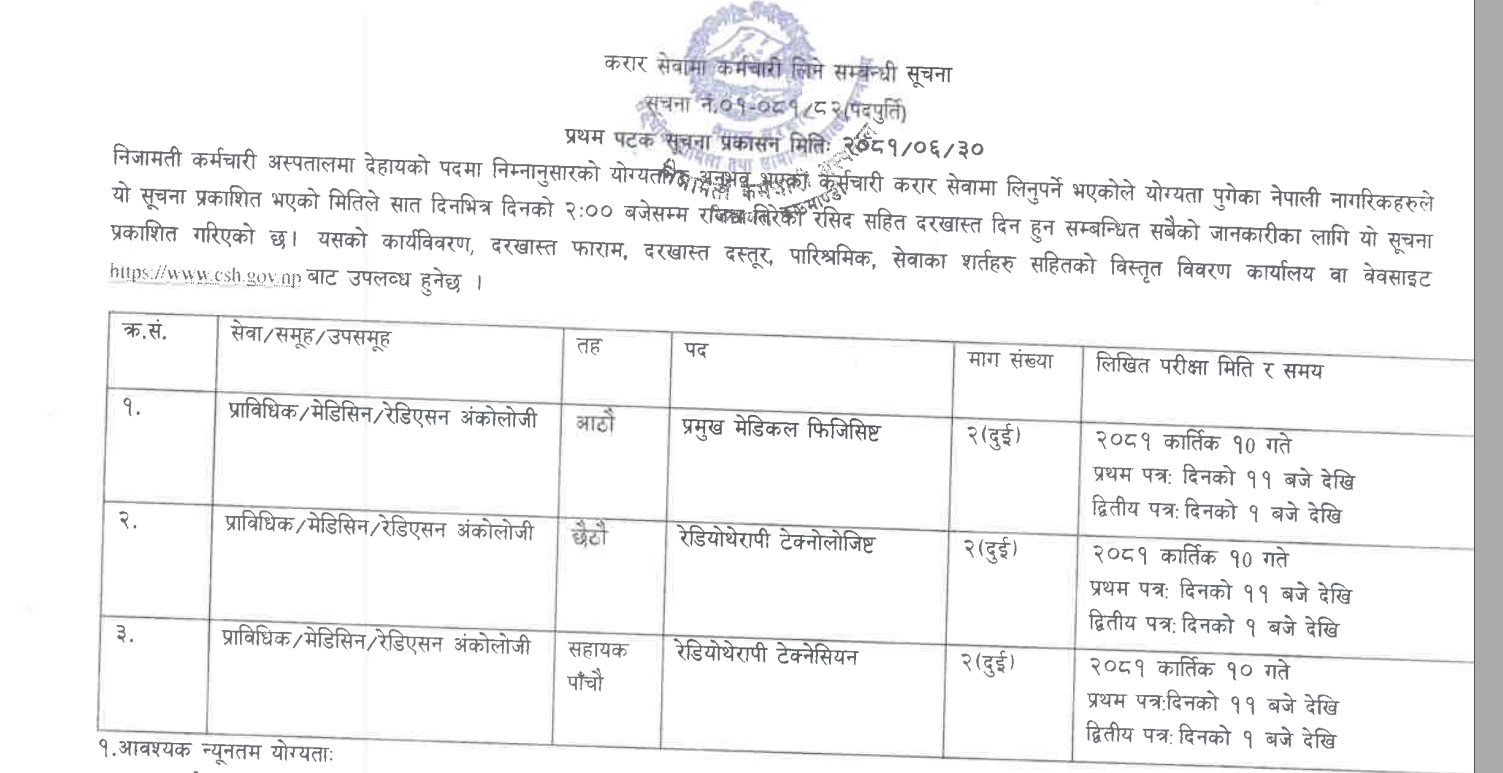 निजामती कर्मचारी अस्पतालमा करार सेवामा कर्मचारी आवश्यकता सम्बन्धी सूचना