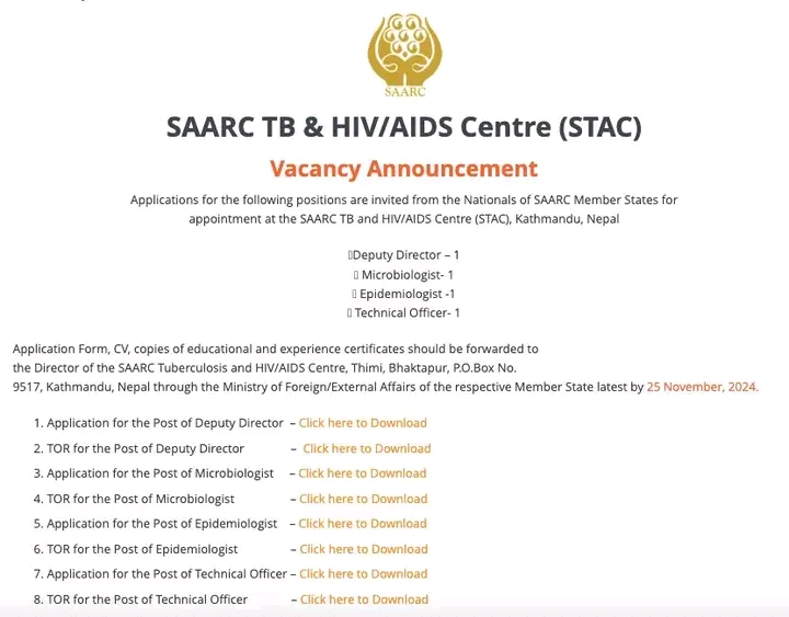 Vacancy Announcement At SAARC TB & HIV/AIDS Centre (STAC)