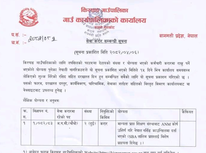 किस्पाङ गाउँपालिकामा अ.न.मी आवश्यकता सम्बन्धी सूचना