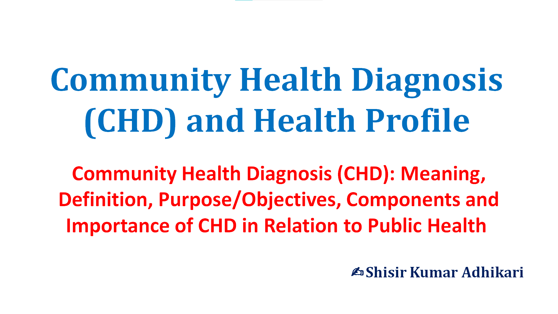 Community Health Diagnosis (CHD): Meaning, Definition, Purpose/Objectives and Importance of CHD in Relation to Public Health Community Health Diagnosis (CHD) Community...